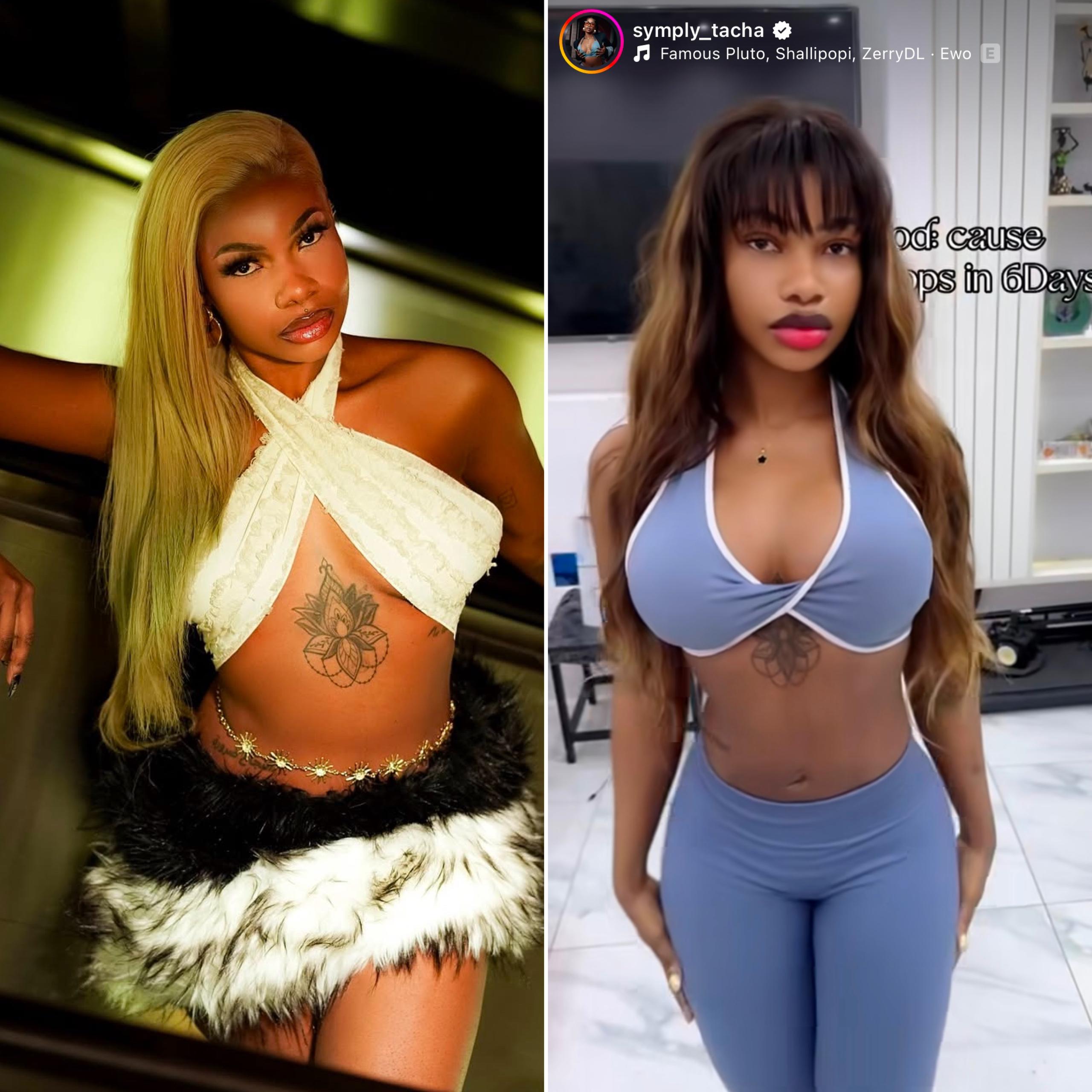 Interestingly, Tacha didn’t confirm or deny having cosmetic surgery but this isn’t the first time she’s been the subject of plastic surgery rumours. Since her rise to fame on BBNaija Pepper Dem in 2019, fans have consistently speculated about her physical transformation.