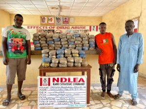 “The arrest of the trio on Tuesday 8th July followed credible intelligence. Three other suspects: Shamsudini Abdullahi, 35; Adamu Abdullahi,21; and Magaji Rabo, 26, were nabbed with 48.1kg skunk at Janguza barracks area of Kano state by NDLEA operatives on Wednesday 9th July.